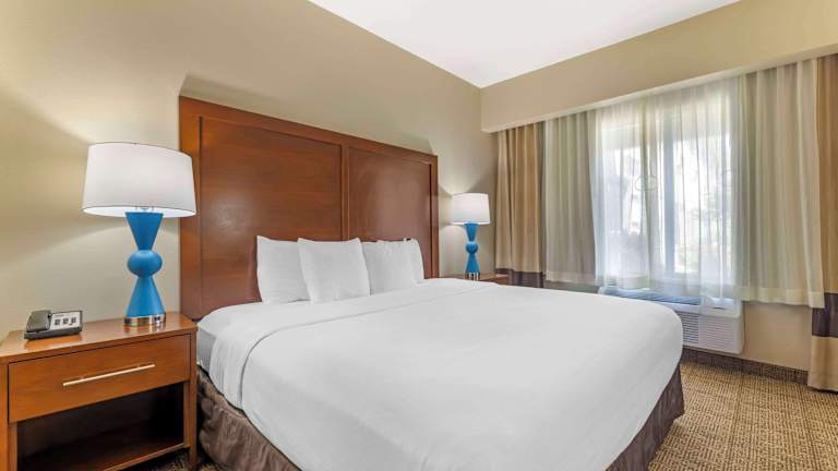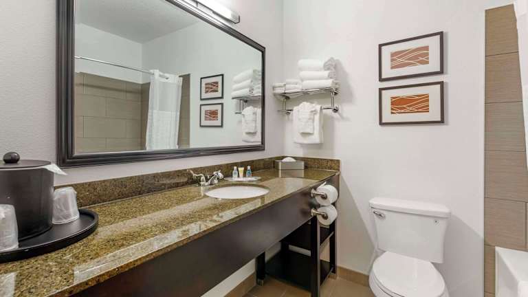 Die Suiten sind geräumig und bieten eine komfortable Ausstattung, darunter eine Klimaanlage, Heizung, Mikrowelle, Kühlschrank und eine Kaffee-/Teezubereiter. Jedes Zimmer ist mit einem TV-Gerät und kostenfreiem WiFi ausgestattet. Die Bäder verfügen über eine Dusche sowie eine Whirlwanne, und es sind Kosmetikartikel sowie ein Haartrockner vorhanden. Zustellbetten können angefordert werden, und rollstuhlgerechte Zimmer mit barrierefreiem Badezimmer sind ebenfalls buchbar.