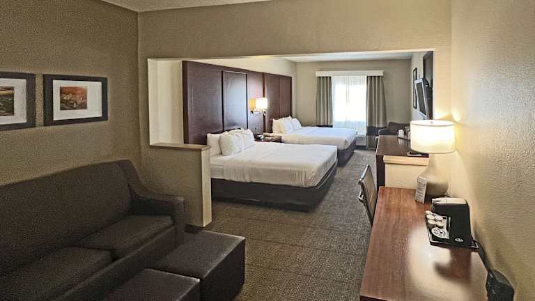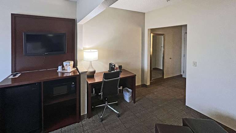 Das Hotel Comfort Suites Peoria verfügt über 79 Suiten, die über alle Annehmlichkeiten für einen erholsamen Aufenthalt bieten. Zu den Einrichtungen gehören eine Rezeption, ein Aufzug, ein TV-Raum, medizinische Betreuung, ein Wäscheservice, ein Konferenzraum sowie ein Businesscenter. Eine Tageszeitung steht den Gästen kostenfrei zur Verfügung. Das Hotel bietet ebenfalls rollstuhlgerechte Einrichtungen und akzeptiert gängige Kreditkarten. Für Gäste mit Fahrzeug steht eine Parkiermöglichkeit zur Verfügung.