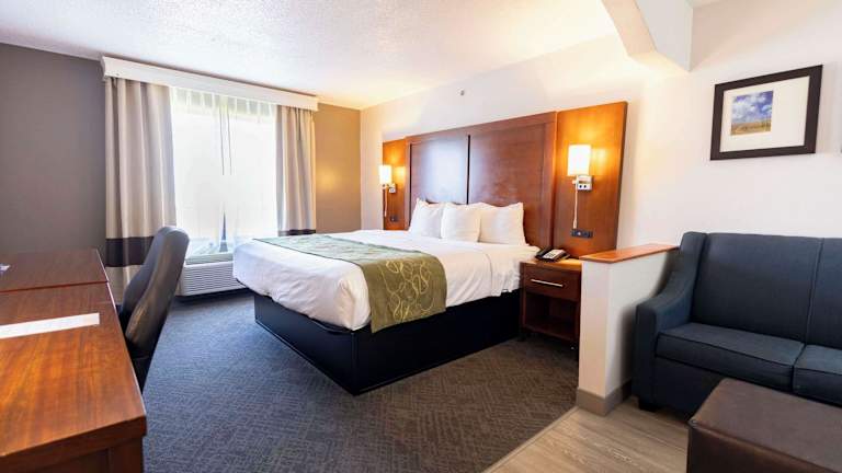 Das Comfort Suites Springfield I-70 Hotel liegt an der Interstate 70 in Springfield, in der Nähe von verschiedenen Hochschulen wie der Wittenberg University, der Cedarville University und der Wright State University. Beliebte Sehenswürdigkeiten in der Umgebung sind der Clark County Fairgrounds, Young's Jersey Dairy, Clifton Mill und die Ohio Caverns. Der internationale Flughafen Dayton ist lediglich 30 Meilen entfernt, während der internationale Flughafen Port Columbus 45 Meilen entfernt ist. Golfbegeisterte können auf nahegelegenen Golfplätzen spielen. Im Winter stehen Möglichkeiten zum Skifahren im Mad River Mountain zur Verfügung.