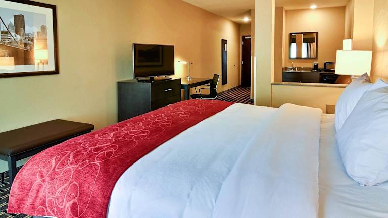 Das Comfort Suites Uniontown umfasst 80 Zimmer und bietet eine Vielzahl an Annehmlichkeiten, einschliesslich einem Aufzug, einer 24-Stunden-Rezeption und einem Hotelbus. Darüber hinaus stehen Aussen- und Innenpools zur Verfügung, die beheizbar sind. Die Einrichtung umfasst einen Minimarkt sowie ein Businesscenter.