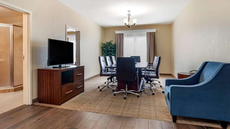 Die gastronomischen Einrichtungen umfassen ein Restaurant, ein Café und eine Bar. Morgens wird ein reichhaltiges Frühstücksbuffet mit warmen Waffeln, Eiern, Joghurt und frischem Obst angeboten. Für Frühaufsteher steht eine 'Your Suite Success Grab & Go-Tasche' zur Verfügung.
