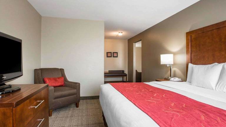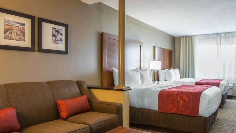 Die Zimmer im Comfort Suites Victorville sind ausgestattet mit einer Klimaanlage, Heizung, und bieten Platz für ein Doppelbett, ein Queensize-Bett oder ein Kingsize-Bett sowie ein Sofabett. Ausserdem sind ein Safe, eine Minibar, ein Schreibtisch sowie ein Kühlschrank, eine Mikrowelle und eine Tee-/Kaffeemaschine vorhanden. WLAN ist ohne Gebühr verfügbar, und in den Badezimmern findet man eine Dusche und einen Haartrockner. Rollstuhlgerechte Zimmer sind ebenfalls erhältlich.