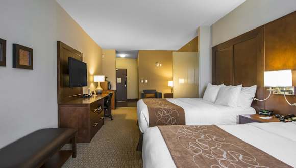 Die Zimmer im Comfort Suites sind ausgestattet mit Klimaanlage, Heizung, Kühlschrank, Mikrowelle und einer Tee-/Kaffeemaschine. Ein Sitting-Bereich, ein Fernseher sowie kostenfreies Wifi stehen zur Verfügung. Die Badezimmer verfügen über eine Dusche und einen Haartrockner. Es sind rollstuhlgerechte Zimmer mit barrierefreiem Badezimmer buchbar. Nichtraucherzimmer sind ebenfalls verfügbar.