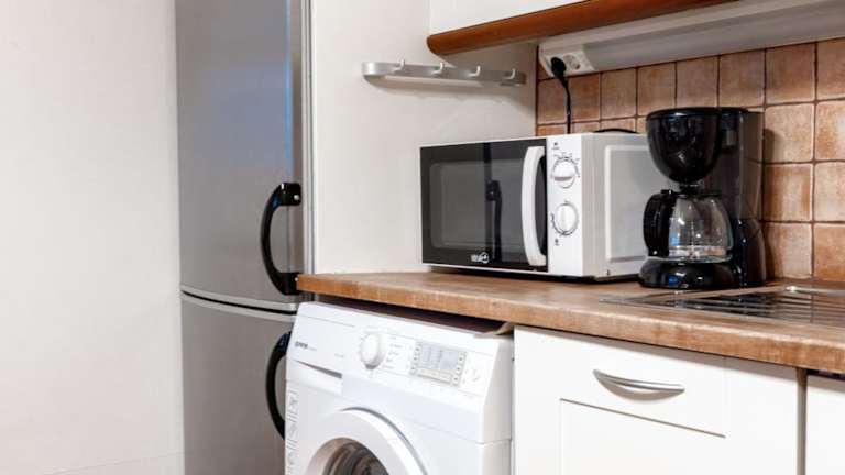 Die Unterkunft verfügt über eine Küche, die mit einem Kühlschrank, einem Geschirrspüler, einem Ofen, einer Kaffeemaschine und einem Wasserkocher ausgestattet ist.