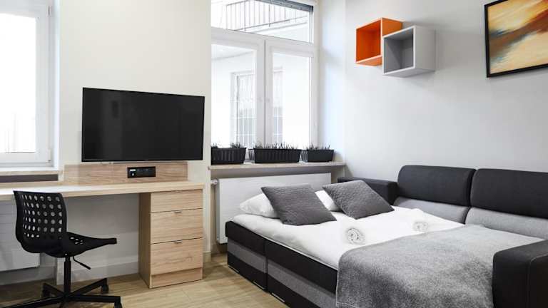 Die Compact Studios Słowackiego Avenue bietet Übernachtungsmöglichkeiten mit Klimaanlage sowie kostenlosem Wifi. Jedes Studio ist mit einem Flachbild-TV ausgestattet und verfügt über ein eigenes Badezimmer mit Dusche und Haartrockner. Die Küchen in den Studios sind mit Kühlschrank, Geschirrspüler und Mikrowelle ausgestattet. Einige Wohneinheiten bieten zusätzlich einen Sitzbereich und/oder einen Balkon.