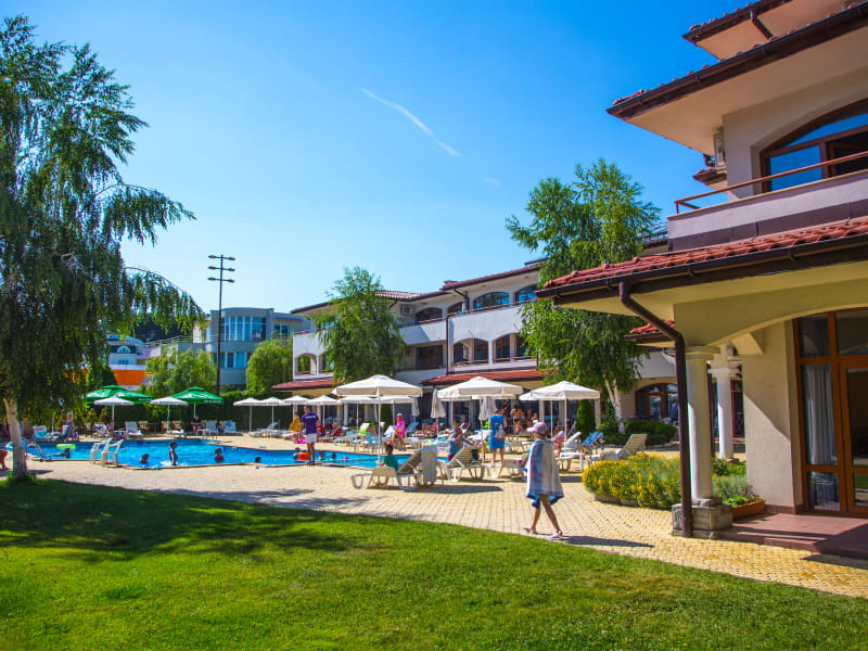 Das Complex Sunrise All Inclusive befindet sich in der Zora Area von Sunny Beach, nur 100 m vom Strand entfernt. Der Action Aqua Park ist 2,5 km entfernt, während der Cacao Beach nach 5 km erreicht werden kann. Das Zentrum von Sunny Beach liegt 2 km entfernt, und der Flughafen Burgas ist 29 km weit entfernt.
