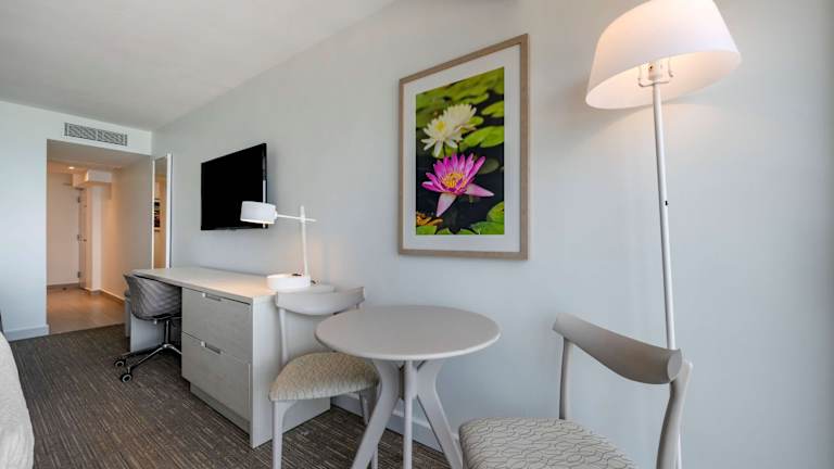 Die klimatisierten Zimmer und Suiten bieten ein angenehmes Raumklima und verfügen über moderne Annehmlichkeiten. Jedes Zimmer lässt sich mit einem Kingsizebett und einem Sofabett einrichten. Zudem sind ein Safe, eine Minibar und ein Schreibtisch vorhanden. Auch ein Kühlschrank, eine Mikrowelle sowie eine Kaffee-/Teemaschine sind verfügbar. Die Badezimmer sind mit einer Dusche und Badewanne ausgestattet, inklusive Kosmetikartikeln und einem Haartrockner. Die Unterbringung hält sowohl Familien- als auch Nichtraucherzimmer bereit.