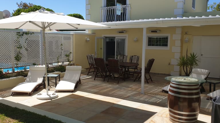 Zentralgelegene Ferienhäuser und Apartments in Constantia und Tokai, den schicken Villenvororten von Kapstadt hinter dem Tafelberg, mit großen, schönen Gärten und beheizten Swimming-Pools. Alle Einheiten sind mit einer komplett eingerichteten Küche, Smart-TVs, Klimaanlagen und Außensitzmöglichkeit (Terrasse, Patio oder Balkon) versehen. Im Außenbereich befinden sich mehrere gemütliche Sitzgruppen und Esstische mit Blick in den üppigen, des Nachts herrlich beleuchtetem Garten mit großer Kaskade, Springbrunnen und einer rustikalen, aus Massivholz gefertigten Gartenschaukel. Belegung: Die Standardbelegung ist 14 Personen, kann aber gegen einen zusätzlichen Mietbetrag um 3 Personen erweitert werden, also insgesamt 17 Erwachsene. 2 Baby-Bettchen können gestellt werden. Parken: Sicheres Parken auf den geschützten Geländen ist selbstverständlich, Hof- und Garagenparkplätze stehen zur Verfügung. Internet: Schnelle Internet-Verbindung über Glasfaserkabel. Unbegrenztes Datenvolumen und extrem schnelle Datenübertragung mit bis zu 300/150 mbps! Sicherheit: Die gesamten Anwesen dsind mit Kameraüberwachung und umfangreicher Sicherheitstechnik versehen, mit Bewegungsmeldern im Außenbereich und Kontakten im Innenbereich. TOURISM GRADING COUNCIL OF SOUTH AFRICA: Die Apartments von "Constantia Cottages" wurden vom TGCSA, dem Tourism Grading Council of South Africa mit 4 Sternen bewertet und werden vom AA, dem ADAC-Pendant in Südafrika, im Rahmen des AA Quality Assured Accommodation Programme als SUPERIOR bezeichnet. Die Cottages wurden vom TGCSA mit 3 Sternen bewertet und werden vom AA im Rahmen des AA Quality Assured Accommodation Programme besonders empfohlen und mit HIGHLY RECOMMENDED bezeichnet. SANLAM TOP DESTINATION AWARDS: Constantia Cottages wurden mit dem Titel "SANLAM TOP DESTINATION 2015, Winner, Self Catering 3 Stars Accommodations" ausgezeichnet (auf ganz Südafrika bezogen). TRIPADVISOR: Über Jahre wurden den Constantia Cottages von der Bewertungsplattform tripadvisor das "CERTIFICATE OF EXCELLENCE" verliehen, das auf eine konstant hohe Bewertung der Gäste in dem betreffenden Jahr hinweist. Diese Ferienwohnungen sind schon etwas Besonderes: Schöne Atmosphäre, alle Tele-Kommunikationsmittel (200mbps schnelles WiFi) und eine maximal mögliche Sicherkeit. Und .... Pool- und Grillparties für alle Gäste, integrierte Weinproben und die Belieferung mit erstklassigen Weinen - zu Kellerpreisen der Weingüter - direkt vor Ort. Auf Wunsch erhalten die Gäste Tipps für Aktivitäten, Besichtigungen und Einkaufsmöglichkeiten und können einen Service für Restaurants-Buchungen in Anspruch nehmen.