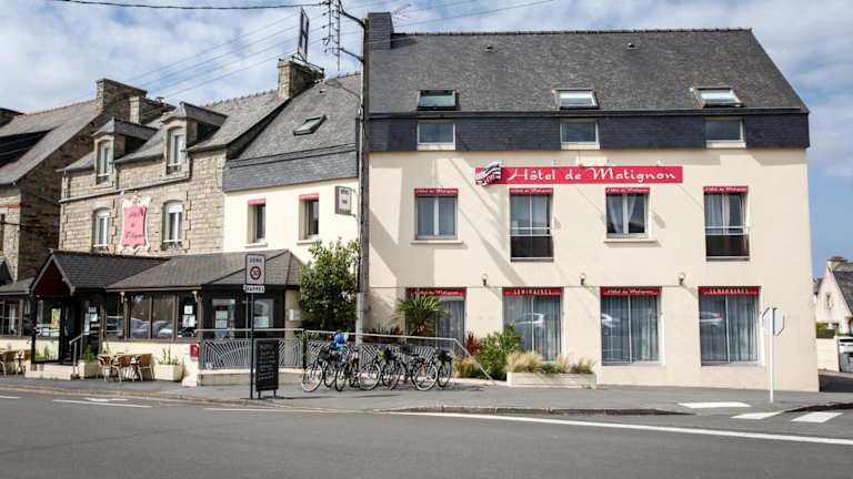 Das Hotel de Matignon befindet sich im malerischen Dorf Matignon, nur 5 km vom Meer entfernt und 14 km vom beeindruckenden Cap Fréhel. Die Umgebung bietet zahlreiche Möglichkeiten für Erholung und Naturerlebnisse.