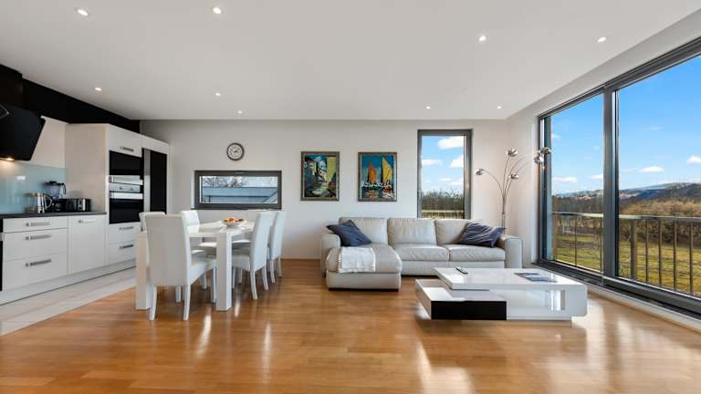 Die Unterkunft Contemporary apartment with rooftop terrace in Maribor bietet eine Terrasse mit Grillmöglichkeiten und Übernachtungsmöglichkeiten in einer heimeligen Umgebung. Kostenfreies Wifi ist ebenfalls verfügbar.