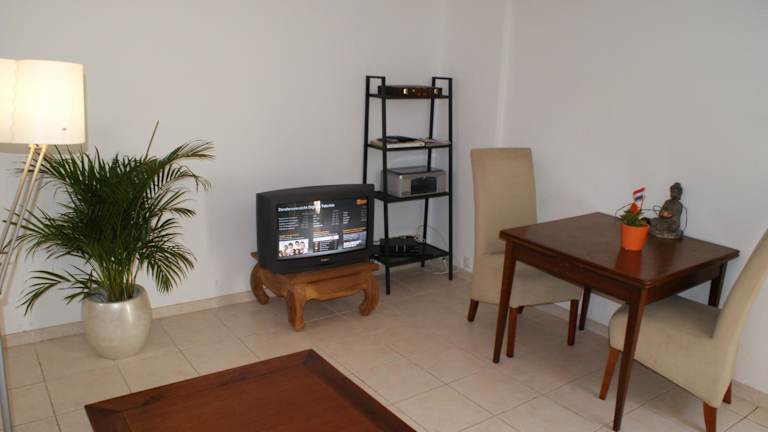 Das Appartement ist mit einem Schlafzimmer und einem Badezimmer ausgestattet. Zur Ausstattung gehören Bettwäsche und Handtücher, ein Flachbild-TV mit Kabelkanälen sowie ein Essbereich. Die voll ausgestattete Küche ermöglicht es den Gästen, ihre eigenen Mahlzeiten zuzubereiten. Zudem bietet die Terrasse einen Blick auf den Garten.