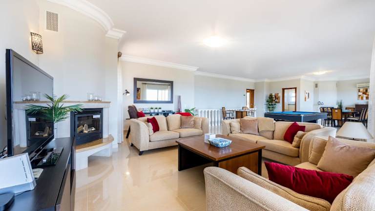 Die Villa besteht aus 5 Schlafzimmern, einem Wohnzimmer und einer voll ausgestatteten Küche mit Kühlschrank und Kaffeemaschine. Es gibt 5 Badezimmer mit Dusche und Haartrockner. Die Ausstattung umfasst einen Flachbild-TV mit Kabelkanälen, eine Spielekonsole (Nintendo Wii), einen DVD-Player und einen CD-Player.