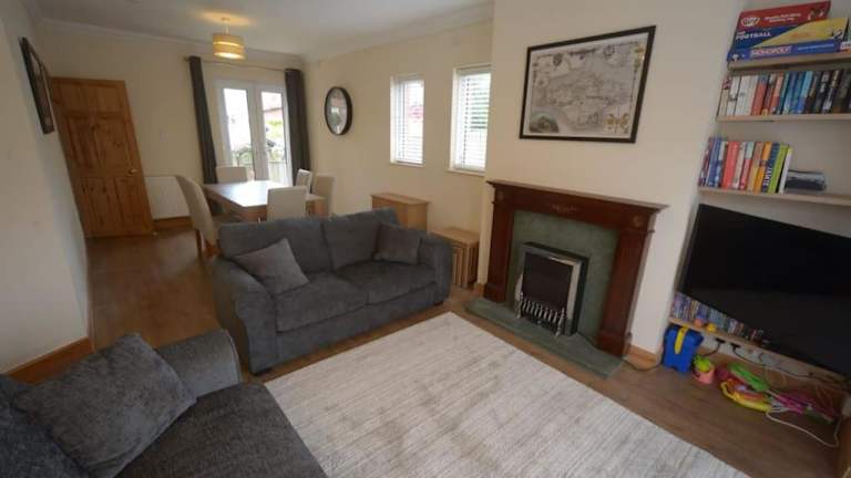 Das Ferienhaus umfasst drei Schlafzimmer, ein Wohnzimmer mit einem Flachbild-TV und eine gut ausgestattete Küche mit Kühlschrank und Geschirrspüler. Ein Badezimmer mit Dusche ist ebenfalls vorhanden. Handtücher und Bettwäsche stehen zur Verfügung und die Unterkunft bietet Nichtraucherzimmer sowie Familienzimmer.