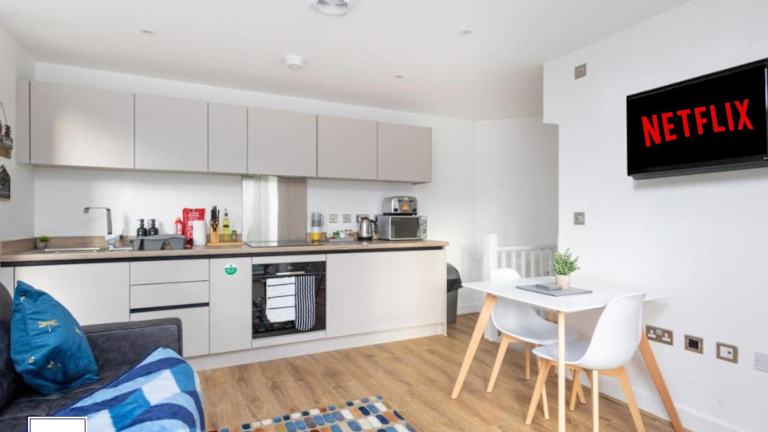Copper Beech by Alt-Stay bietet Übernachtungsmöglichkeiten in einem modernen Ferienhaus mit Balkon und Stadtblick. Die Unterkunft ist ideal für längere Aufenthalte geeignet und umfasst komfortable Annehmlichkeiten wie eine gut ausgestattete Küche, ein Wohnzimmer, zwei Schlafzimmer und zwei Badezimmer.
