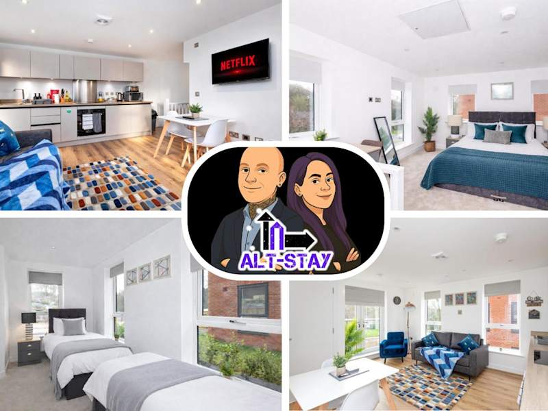 Copper Beech by Alt-Stay bietet Übernachtungsmöglichkeiten in einem modernen Ferienhaus mit Balkon und Stadtblick. Die Unterkunft ist ideal für längere Aufenthalte geeignet und umfasst komfortable Annehmlichkeiten wie eine gut ausgestattete Küche, ein Wohnzimmer, zwei Schlafzimmer und zwei Badezimmer.