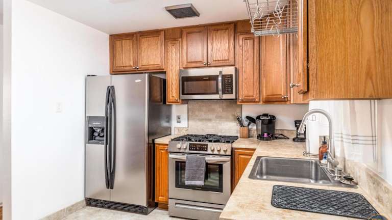 Die Unterkunft umfasst zwei Schlafzimmer und ist ausgestattet mit einer gut eingerichteten Küche, die einen Kühlschrank und einen Ofen bietet. Ein Flachbild-TV sowie ein gemütlicher Sitzbereich sind ebenfalls vorhanden. Das Badezimmer ist mit einer Dusche ausgestattet und Handtücher sowie Bettwäsche werden bereitgestellt.