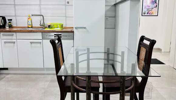 Die Ferienwohnung verfügt über ein Schlafzimmer, ein Wohnzimmer und zwei Badezimmer mit Duschen. Sie bietet zusätzlich einen Flachbild-TV und ist mit einer Küchenausstattung inklusive Kühlschrank und Geschirrspüler ausgestattet. Handtücher und Bettwäsche werden zur Verfügung gestellt.