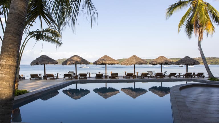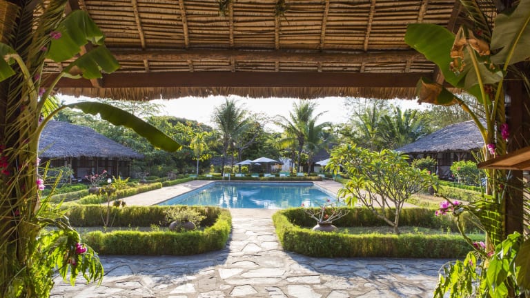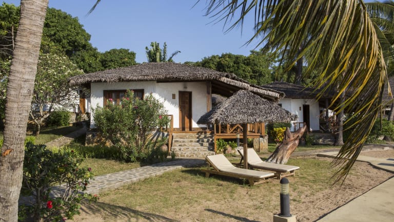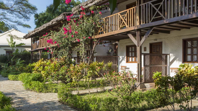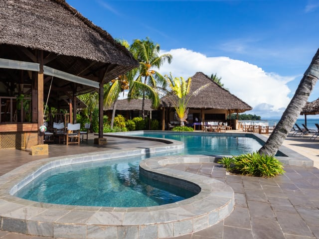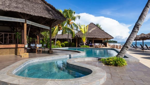 Geprägt von einem kultivierten tropischen garten, befindet sich das Hotel Corail Noir auf Nosy Be am goldenen strand von Ambaro.