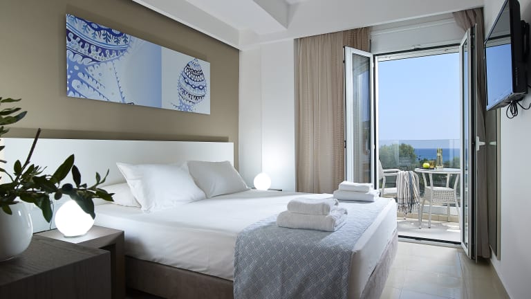 Die Zimmer sind geschmackvoll eingerichtet und bieten eine Klimaanlage sowie Heizung. Alle Unterkünfte verfügen über einen 32-Zoll-Flachbild-TV, einen Safe, ein Bügeleisen und einen schönen Meerblick oder Blick auf den Garten. Die meisten Zimmer verfügen zudem über einen Balkon oder eine Terrasse. Zusätzlich stehen ein Schreibtisch und ein Haartrockner zur Verfügung. Zustellbetten können auf Anfrage angefordert werden. Familien- und Nichtraucherzimmer sind ebenso vorhanden.