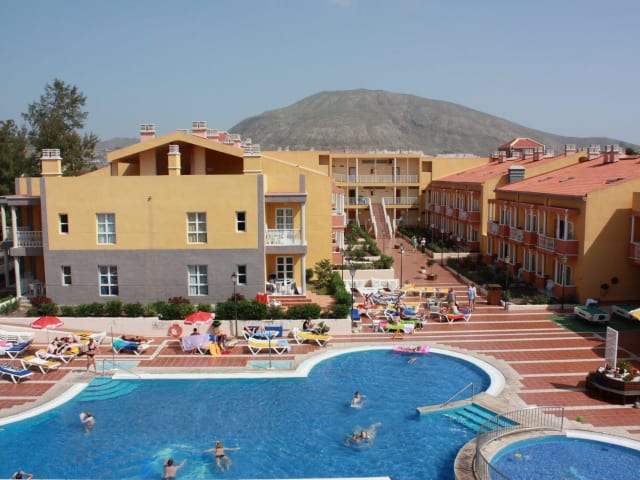 Unterkunft • Total 156 Einheiten (Appartments mit 1 oder 2 Schlafzimmer). Alle grosszügig konzipierten Wohneinheiten sind freundlich eingerichtet und verfügen über einen Aufenthaltsraum, Schlafzimmer, kompletes Bad, voll eingerichtete Küche, mit Kühlschrank, 4 Kochringe, Ofen, Toaster , Wasserkocher , Kaffeemaschine , Direkttelefon, SAT- TV , W´lan, Safe, Balkon oder Terrasse mit Blick auf den Golfplatz, Garten oder Playa de las Américas . Einige der Einheiten verfügen über einen kleinen Privatgarten und verschiedene der Appartment mit 2 Schlafzimmer sind im Duplex-Stil eingerichtet. Reinigung 5 x pro Woche. Die Bettwäsche wird 2 x und die Handtücher 3 x wöchentlich gewechselt. Mietbar: Bügeleisen und –Brett, Fön und Fan.