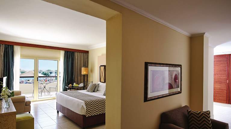 Das Hotel bietet verschiedene Zimmertypen, darunter Doppelzimmer mit individueller Klimaanlage, Minibar und Balkon oder Terrasse. Die Zimmer sind mit einem Bad ausgestattet, das eine Badewanne oder Dusche bietet. Zusätzliche Zimmertypen sind Kinderzimmer und Familienzimmer, die Platz für bis zu mehrere Personen bieten.