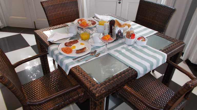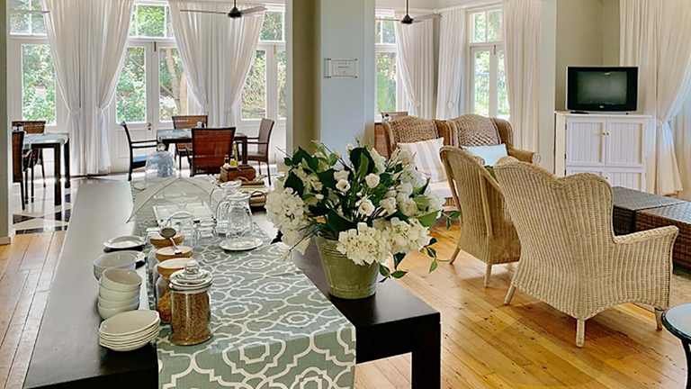 Morgens geniessen die Gäste ein südafrikanisches Frühstück. Weitere Verpflegungsmöglichkeiten umfassen Lunchpakete und die Nutzung der Gemeinschaftsküche. Speisen für spezielle Ernährungsbedürfnisse sind auf Anfrage verfügbar.