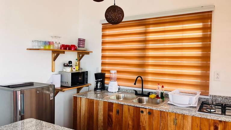 Die Wohneinheiten sind mit einem Balkon und einer Terrasse mit Meerblick ausgestattet. Die Küche erlaubt eine selbständige Zubereitung von Mahlzeiten, und jedes Zimmer verfügt über ein eigenes Badezimmer.