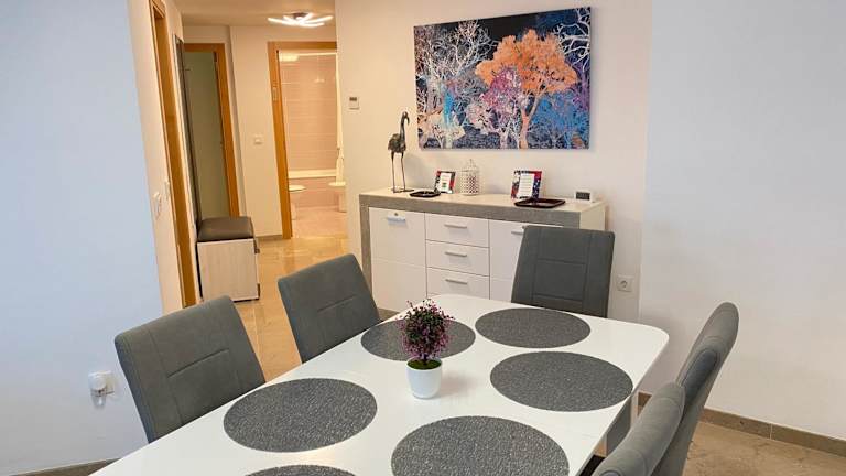Die klimatisierte Ferienwohnung besteht aus 2 Schlafzimmern, einem Wohnzimmer, einer voll ausgestatteten Küche mit Kühlschrank und Wasserkocher sowie 1 Badezimmer mit Bidet und Dusche. Handtücher und Bettwäsche werden zur Verfügung gestellt. Eine Terrasse ist ebenfalls verfügbar.