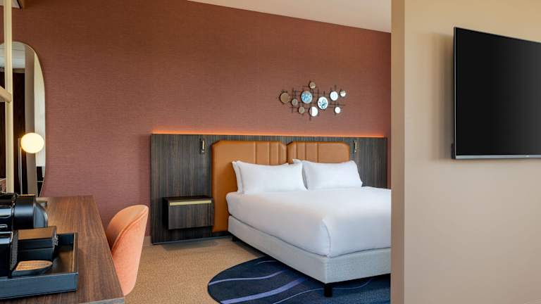 Die Zimmer bieten entweder ein Doppelbett oder ein Sofabett. Zur Standardausstattung zählen ein Schreibtisch, ein Flachbild-TV, ein Minikühlschrank und ein Safe. Die Badezimmer sind mit Dusche, Badewanne und Haartrockner ausgestattet. Für zusätzlichen Komfort sorgen Bademäntel und eine Auswahl an Kosmetikartikeln. Barrierefreie Badezimmer stehen ebenfalls zur Verfügung.