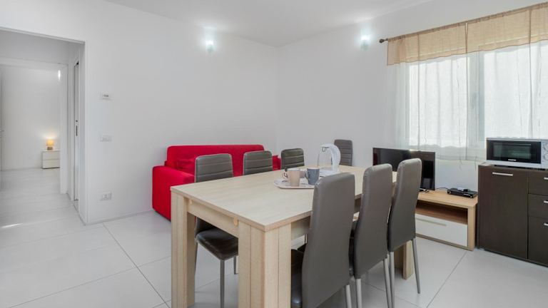 Cormorani - Appartamento 8 bietet eine Ferienwohnung mit Meerblick, die direkt am Strand gelegen ist. Die Unterkunft verfügt über eine Veranda sowie Zugang zu kostenlosem Wifi und ist klimatisiert. Die Reinigung wird zwischen den Aufenthalten durchgeführt, um die Hygiene zu gewährleisten.