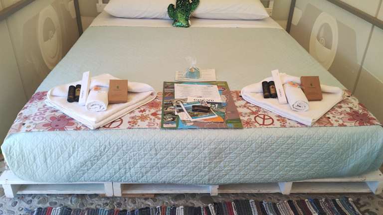 Das Cornelia Hippie Magic Bus bietet ein luxuriöses Zelt, das mit Handtüchern und Bettwäsche ausgestattet ist. Hier können Sie sich wie zu Hause fühlen und den Komfort eines eigenen Zuhauses genießen. Das Zelt verfügt über kostenfreie Privatparkplätze und bietet somit die Möglichkeit, die Umgebung bequem mit dem Auto zu erkunden.