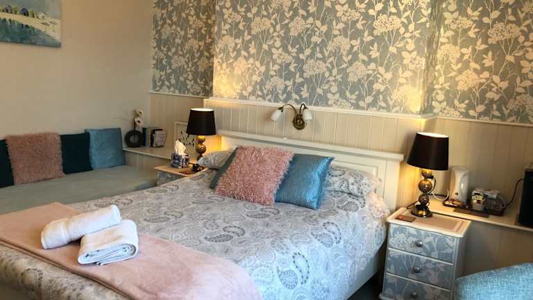 Das Angebot umfasst ein Frühstück, das englische/irische, vegetarische und vegane Optionen beinhaltet. Essenslieferungen in die Unterkunft sind ebenfalls möglich.