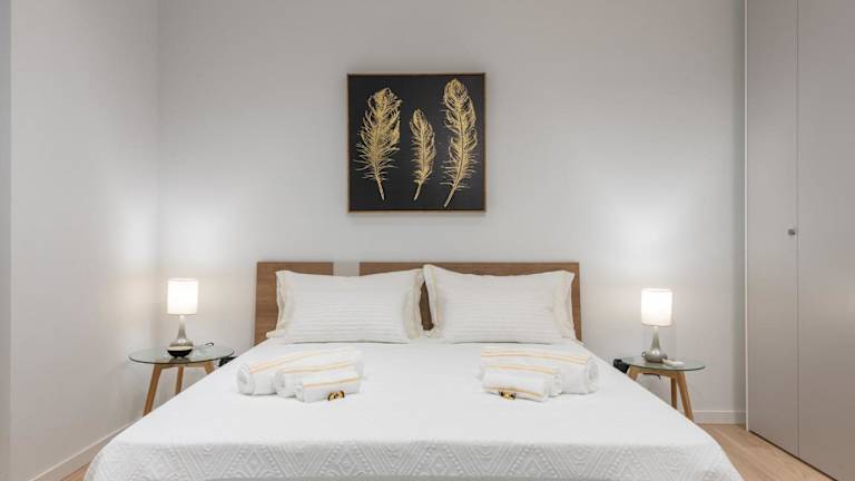 Die Ferienwohnung verfügt über ein Schlafzimmer und ein Badezimmer mit Bidet und Dusche. Die Einrichtung ist modern und bietet Bequemlichkeit für einen angenehmen Aufenthalt.