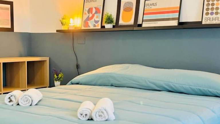Die Ferienwohnung besteht aus einem Schlafzimmer, einem Wohnzimmer und einem Badezimmer mit Bidet und Dusche. Ein Flachbild-TV gehört zur Ausstattung.