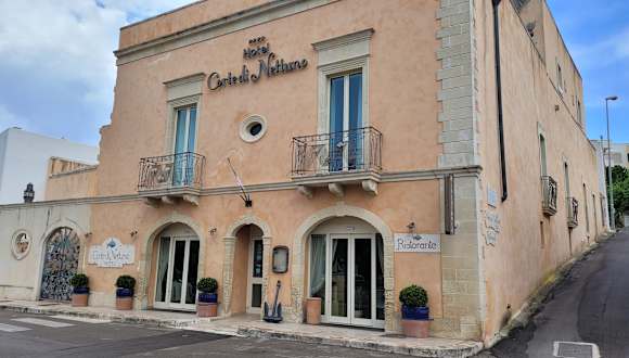 Das Hotel Corte di Nettuno befindet sich in einem historischen Ort des Salento, nur 300 Meter von der Burg und dem Yachthafen von Otranto entfernt, in der Nähe des Hügels der Göttin Minerva. Das Hotel ist der ideale Ort für jeden Reisenden, der das Meer liebt und es liebt, von einer reichen Sammlung alter maritimer Artefakte umgeben zu sein, die ein Echo des Königreichs Neptun darstellen. Die Elemente des Meeres spiegeln sich in der Einrichtung, den Dekorationen und dem handgefertigten Mosaik wider, das sich wie ein roter Faden durch das gesamte Hotel zieht. Zwischen eindrucksvollen Gewölben aus lokalem Stein und einer Terrasse mit Blick auf die Altstadt von Otranto ist das Hotel ein Ort der Begegnung und Entspannung im Herzen eines der berühmtesten Orte des Salento und nur wenige Schritte von Sehenswürdigkeiten wie dem Bauxit-Steinbruch, der mittelalterlichen Kathedrale, dem Leuchtturm von Punta Palascìa und den langen und schönen Stränden von Alimini entfernt.