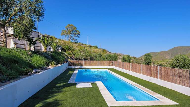 Cortijo 4 Elementos bietet klimatisierte Übernachtungsmöglichkeiten mit einer Terrasse und Bergblick. Die Unterkunft hat zudem einen Garten sowie ein ganzjährig nutzbaren Aussenpool.