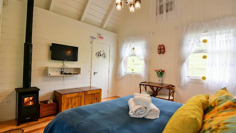 Die Unterkunft Corvo Branco Estalagem befindet sich in Urubici, umgeben von einer idyllischen Gartenlandschaft. Die Lage bietet eine ruhige Umgebung, ideal für Naturfreunde und Erholungssuchende.