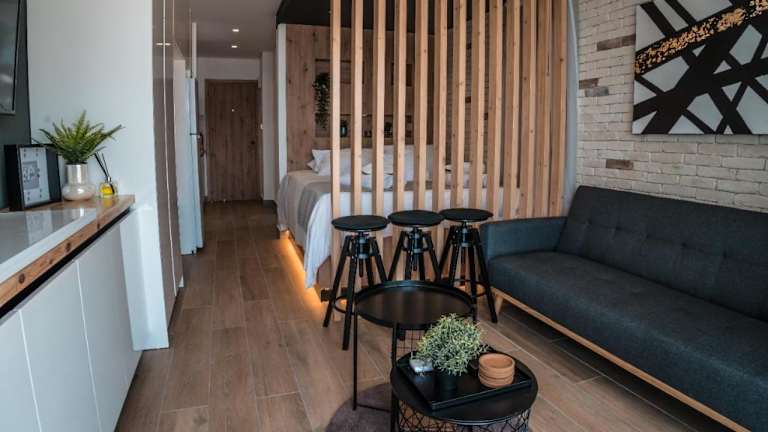 Die Unterkunft besteht aus einem Schlafzimmer, einem Wohnzimmer und einer voll ausgestatteten Küche mit Kühlschrank und Wasserkocher. Das Badezimmer ist mit einer Dusche und kostenlosen Pflegeprodukten versehen. In der Ferienwohnung stehen Handtücher und Bettwäsche zur Verfügung. Klimaanlage sorgt für Bequemlichkeit.