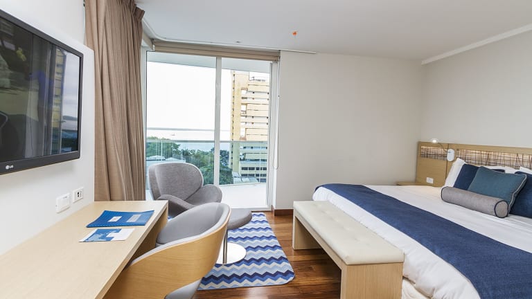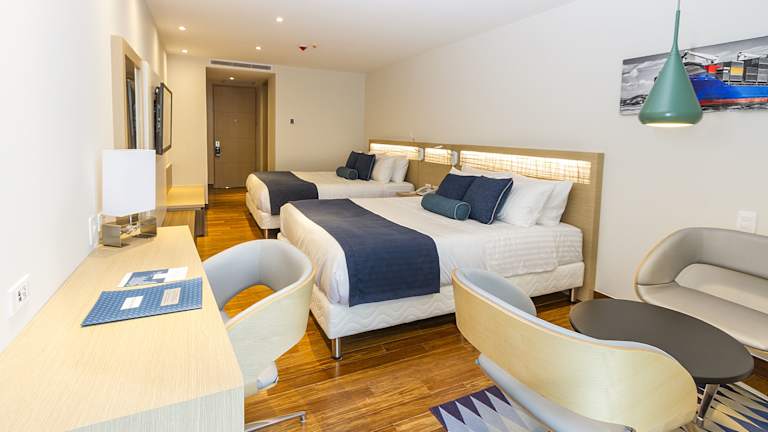 Die klimatisierten Zimmer verfügen über Annehmlichkeiten wie eine Minibar, einen Safe, eine Mikrowelle und Kaffee-/Teezubereiter. Zudem bieten die Zimmer einen Balkon oder eine Terrasse mit Meerblick und sind mit einem Fernseher sowie kostenlos verfügbarer Wifi-Verbindung ausgestattet. Die Badezimmer sind mit einer Dusche, Haartrockner und Bademänteln ausgestattet. Es stehen Familien- und Nichtraucherzimmer zur Verfügung.