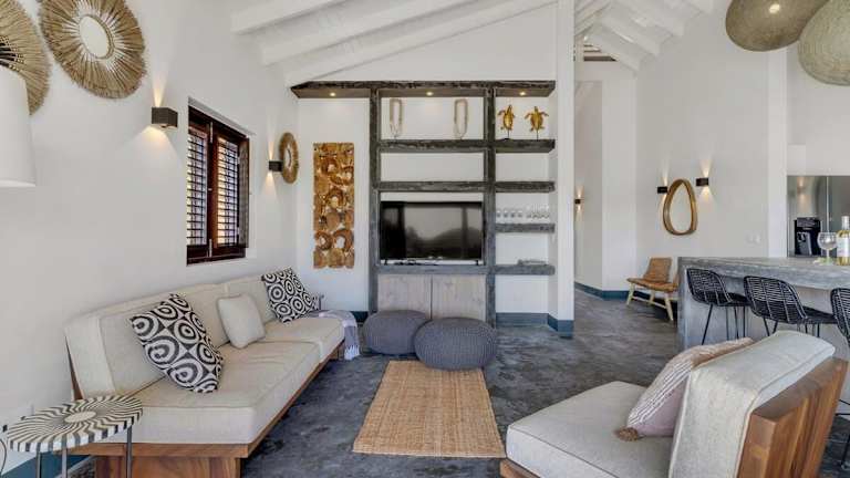 Die klimatisierte Villa bietet 3 Schlafzimmer, einen TV sowie eine Küche, die mit einem Kühlschrank und einem Geschirrspüler ausgestattet ist. Handtücher und Bettwäsche werden zur Verfügung gestellt.