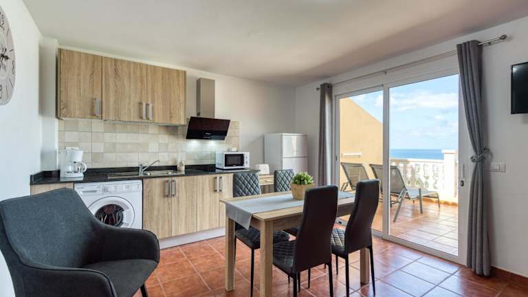 Die Ferienwohnung hat zwei Schlafzimmer und ein Badezimmer. Die Ausstattung umfasst Bettwäsche, Handtücher, einen TV und eine voll ausgestattete Küche. Zudem steht eine Terrasse mit wunderschönem Meerblick zur Verfügung, die einladend zum Verweilen ist.