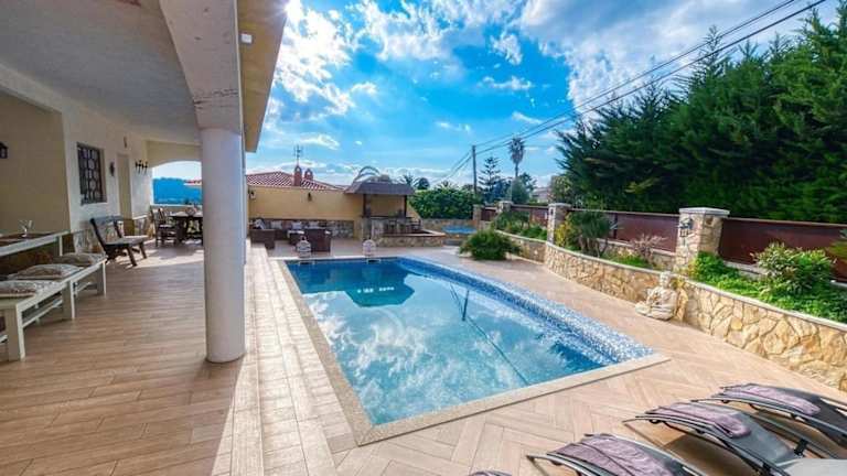 Costacabana - Villa Madonna besticht durch einen Balkon mit Gartenblick, einen Aussenpool sowie einen schönen Garten. Die Villa bietet Übernachtungsmöglichkeiten mit einer Veranda/Pati und kostenlosem Wifi.