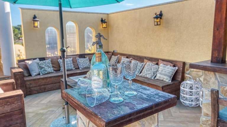 Die Villa ist ausgestattet mit 8 Schlafzimmern, 3 Badezimmern sowie Bettwäsche und Handtüchern. Ein TV, eine voll ausgestattete Küche sowie eine Terrasse mit Bergblick sind ebenfalls vorhanden.