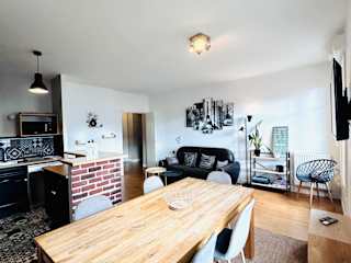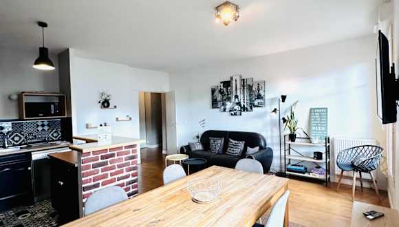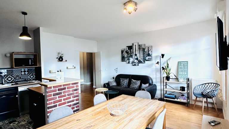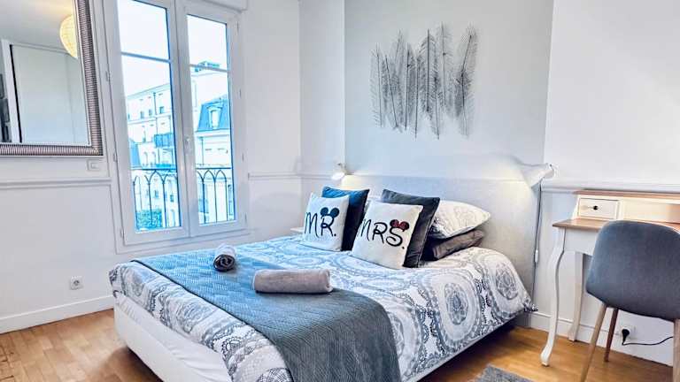 Das Cosy Apartment Carré Elysée Serris bietet Übernachtungsmöglichkeiten in einer heimeligen Ferienwohnung mit einer Veranda/Patio und Blick auf die Stadt.