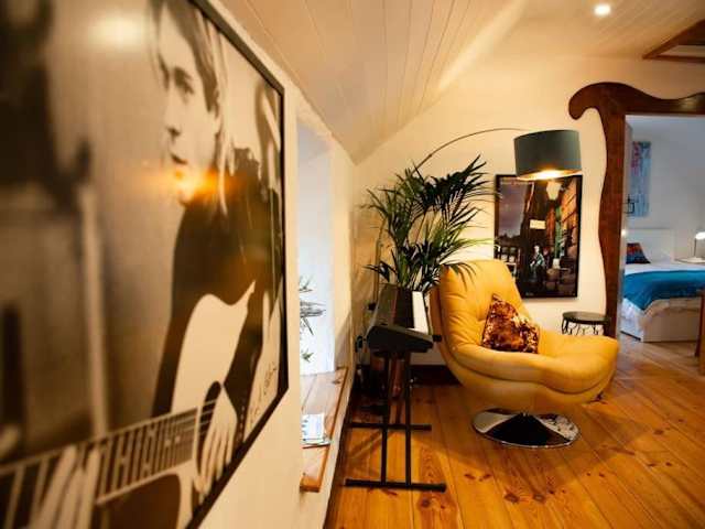 Die Ferienwohnung umfasst ein Schlafzimmer, ein Wohnzimmer und eine voll ausgestattete Küche mit Kühlschrank und Kaffeemaschine sowie ein Badezimmer mit Dusche. Handtücher und Bettwäsche werden bereitgestellt.