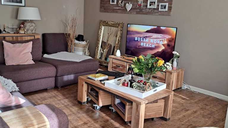 Die Ferienwohnung verfügt über ein Schlafzimmer, einen Flachbild-TV und eine gut ausgestattete Küche.