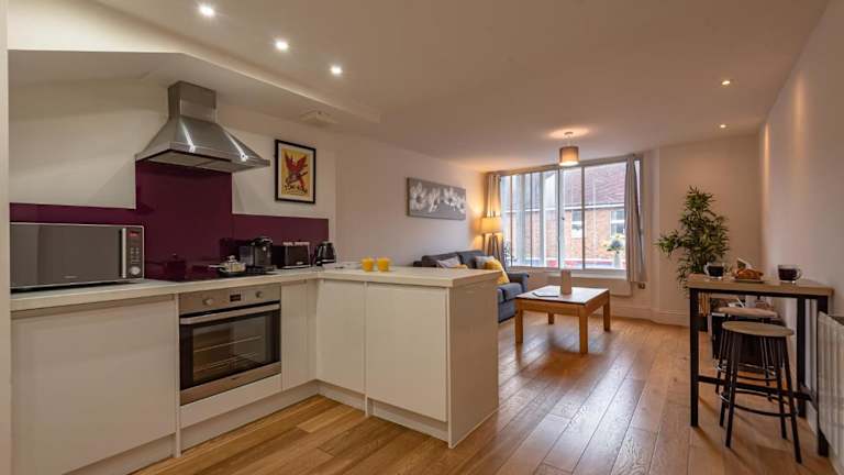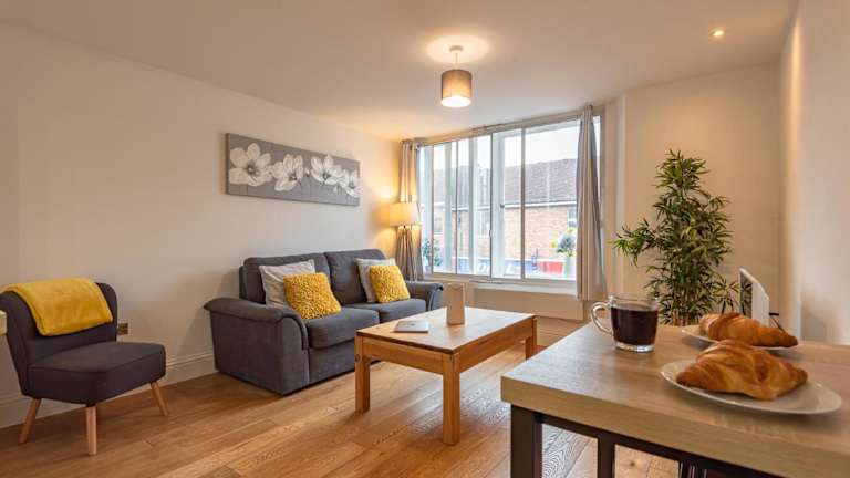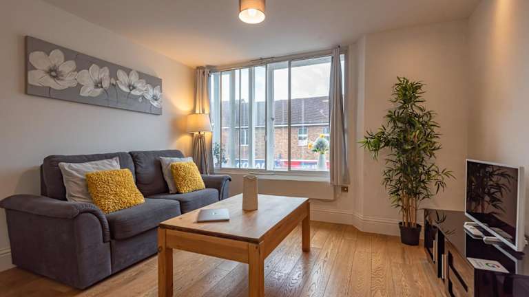 Das Cosy & Bright 2 Bedroom Apartment ist eine gemütliche und helle Ferienwohnung im Stadtzentrum von Newbury, geeignet für bis zu 7 Personen. Die Unterkunft bietet moderne Annehmlichkeiten wie kostenloses Wifi und einen Flachbild-TV. Sie ist für Nichtraucher ausgelegt und erwartet Gäste in einem heimeligen Ambiente.