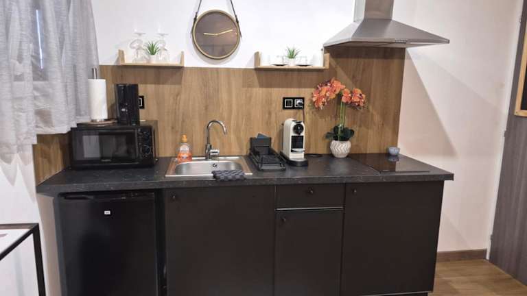 Das Cosy Corner - Appartement spa - Jacuzzi bietet Selbstversorgungsmöglichkeiten mit seiner voll ausgestatteten Küche. Es gibt jedoch auch eine Auswahl an Restaurants und Cafés in der Nähe, in denen die Gäste lokale und internationale Küche genießen können.