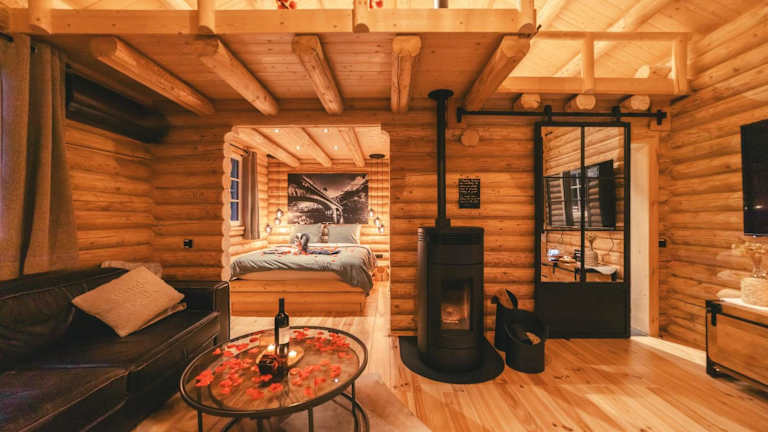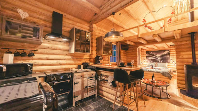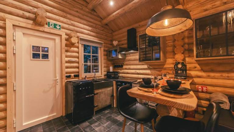 Das Chalet umfasst ein Schlafzimmer sowie eine voll ausgestattete Küche, ideal für Selbstversorger. Ein Flachbild-TV sorgt für Unterhaltung, und die Terrasse gewährt direkten Zugang zur Natur.