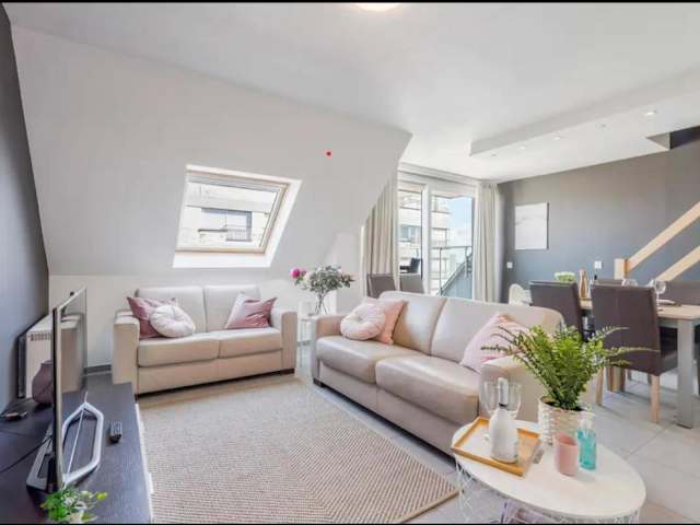 Cosy duplex in Westende met 3 slpk bietet eine heimelige Atmosphäre mit Blick auf das Meer. Die Unterkunft verfügt über eine Terrasse und einen Balkon, welche zur Erholung einladen. Kostenloses Wifi ist verfügbar.